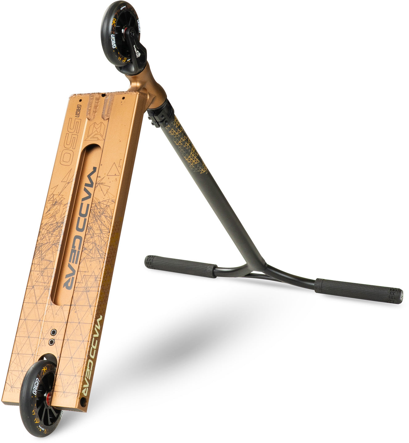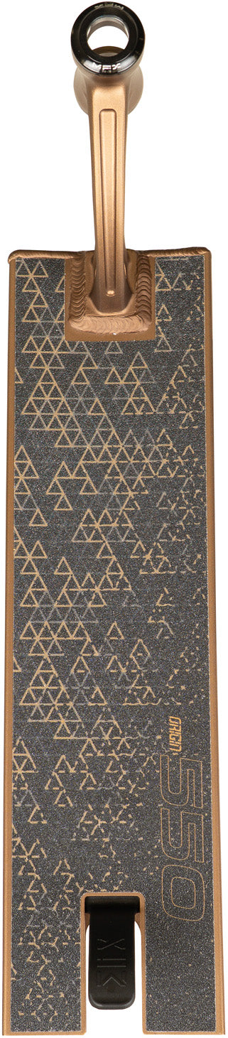 Der MGO 550 Rusty Copper ist ideal für grössere Rider oder alle, die ein besonders stabiles Setup mit viel Standfläche bevorzugen. Das 5.5” breite Deck sorgt für sicheren Halt bei schnellen Park-Lines, während der 26” breite Lenker maximale Kontrolle bei grossen Sprüngen ermöglicht.
