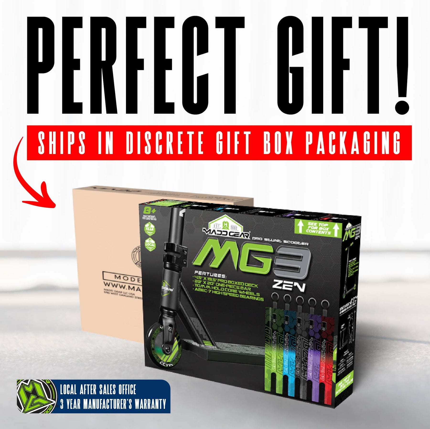 Der Madd Gear MG3 Zen in Schwarz-Grün ist gemacht für Kinder und Jugendliche ab ca. 8-12 Jahren, die sich im Freestyle-Sport weiterentwickeln möchten. Mit seinem dezenten Look, der robusten Verarbeitung und seiner durchdachten Geometrie bietet dieser Scooter alles, was junge Rider für den Einstieg in den Skatepark brauchen.