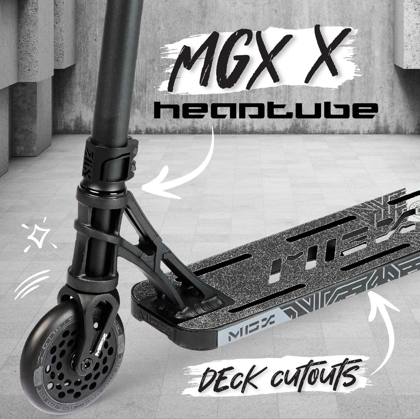 • Bande antidérapante : grip super résistant MGX full deck avec découpe extrême